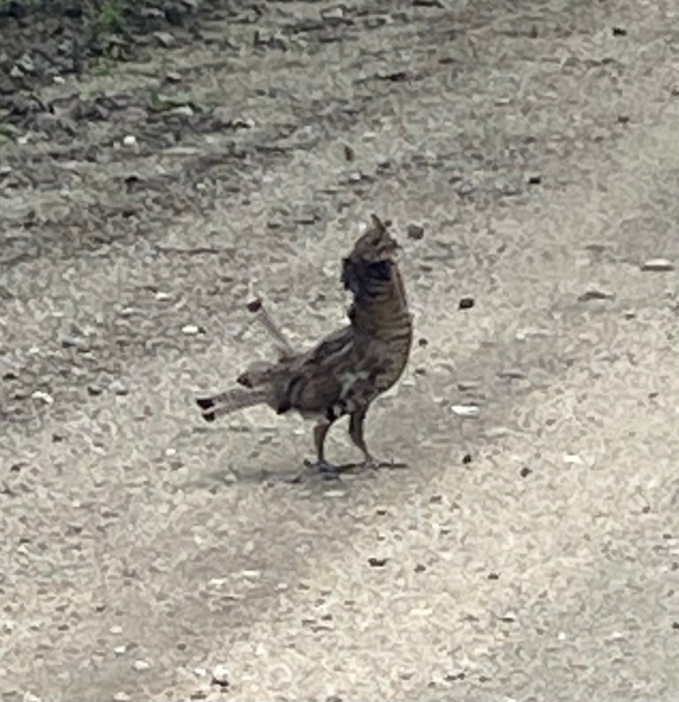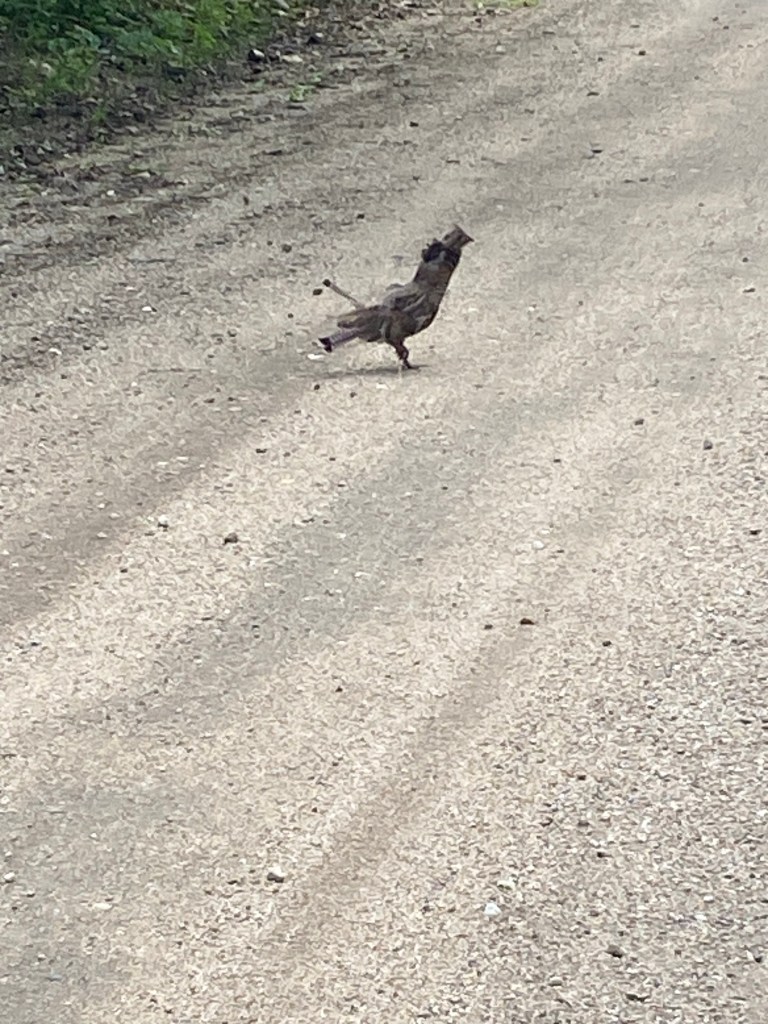 Thursday morning as I reflected on the previous day’s lesson – don’t try to charge uphills yet – this little guy stopped me 10’ away.   He posed for some time, allowing me to admire the fur collar around his neck.  He was showing me the need to slow down, take my time and, yes, take the dam picture so he could get on with crossing the road!