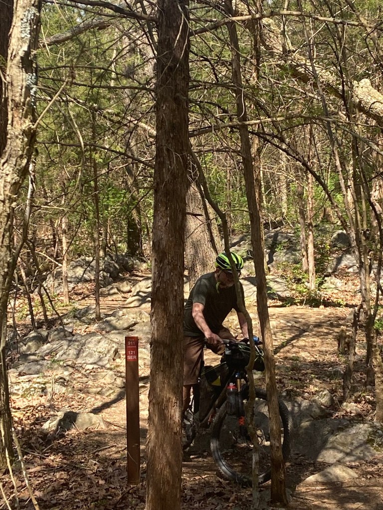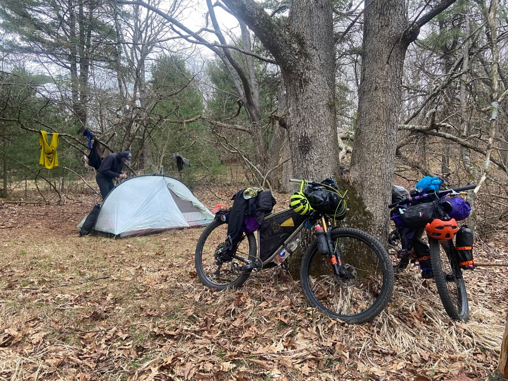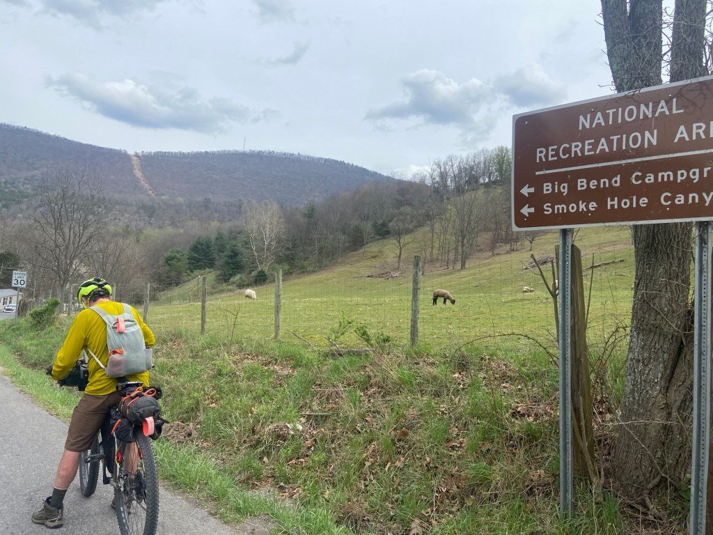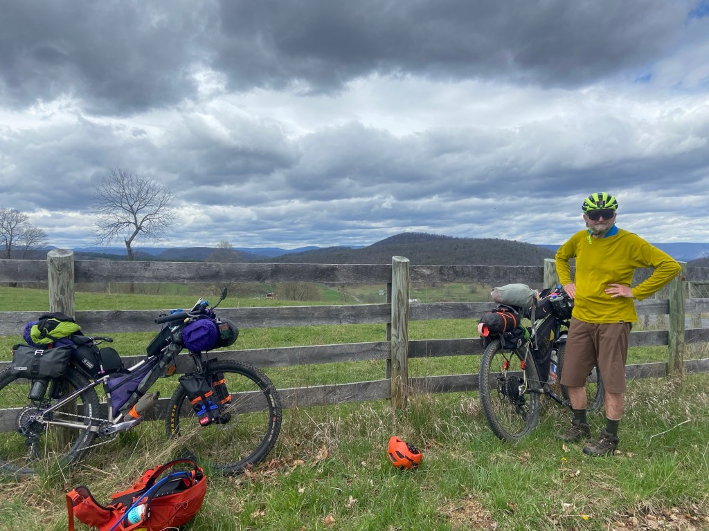 I don’t think the climbing can get more intense but it does. I walk up a really long stretch. My pace has slowed and Mike comes back to push my bike for awhile. A Dominion Energy worker stops to tell us the best camping spot, for which I’m definitely ready. I wonder how he got his truck through the two deep stream crossings.