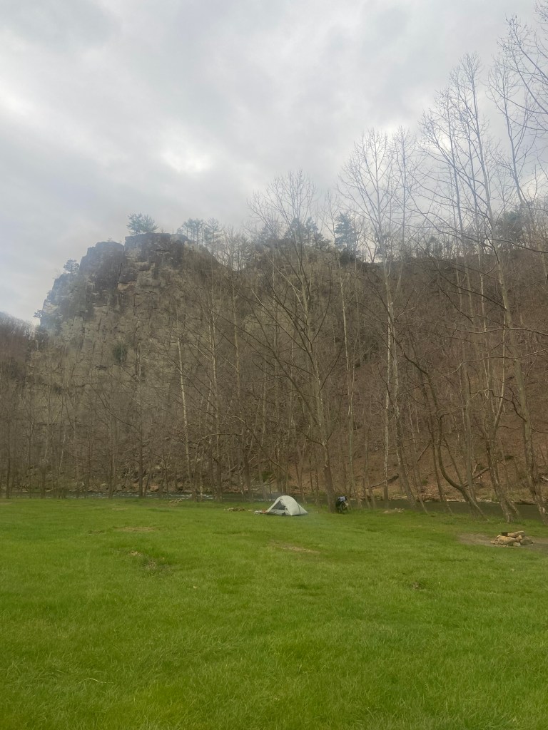 We camp at Eagle Rock on the bank of the South Branch of the Potomac River and dig into another package of emergency rations.
