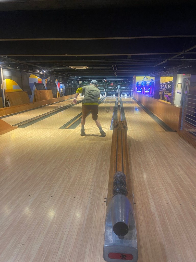 Pre-race meeting was at Ruby’s Arcade. What a trip – Duck Pin Bowling, ping pong, pool & foosball & pizza & a Photo Booth!
