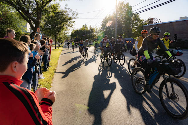 Northville students line Bridge Street to cheer the riders on! (This & the photo at the top by Eric Teed.)